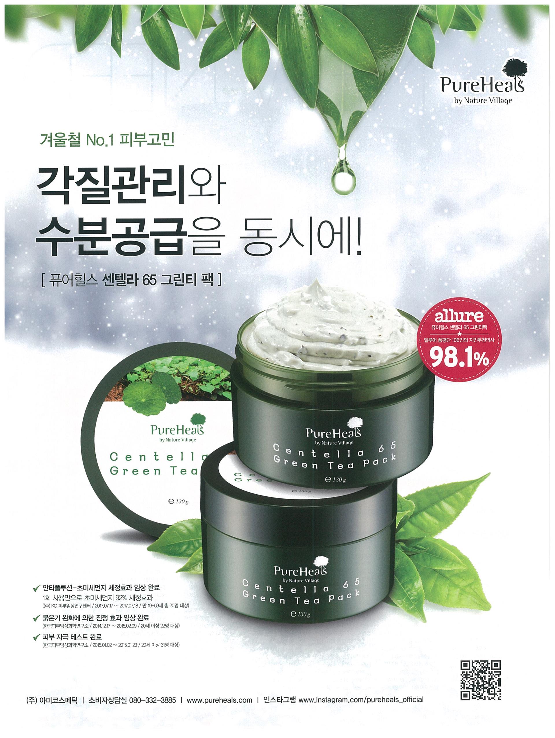 아미코스메틱 퓨어힐스 센텔라 65 그린티 팩