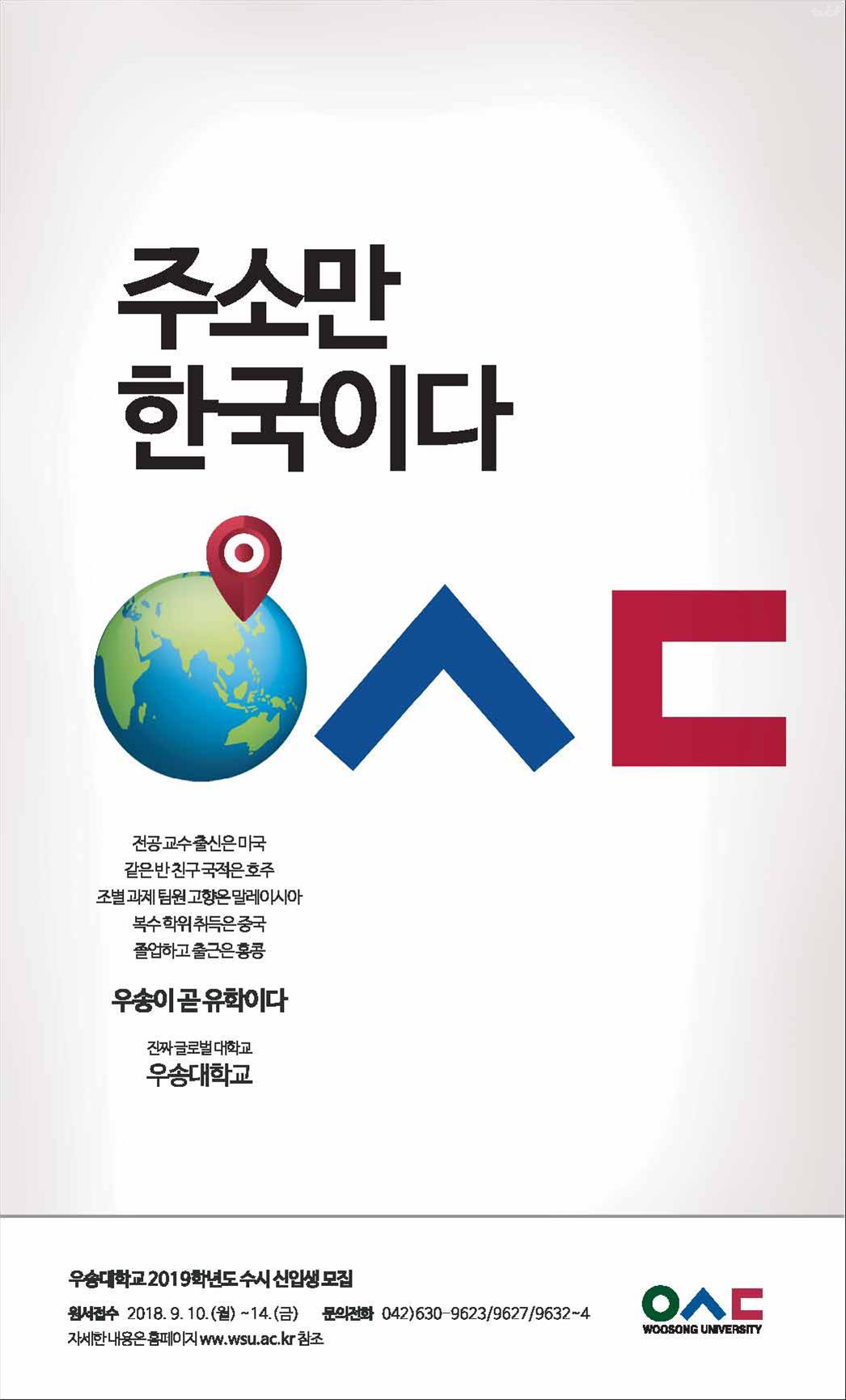 우송대학교 2019학년도 수시 모집