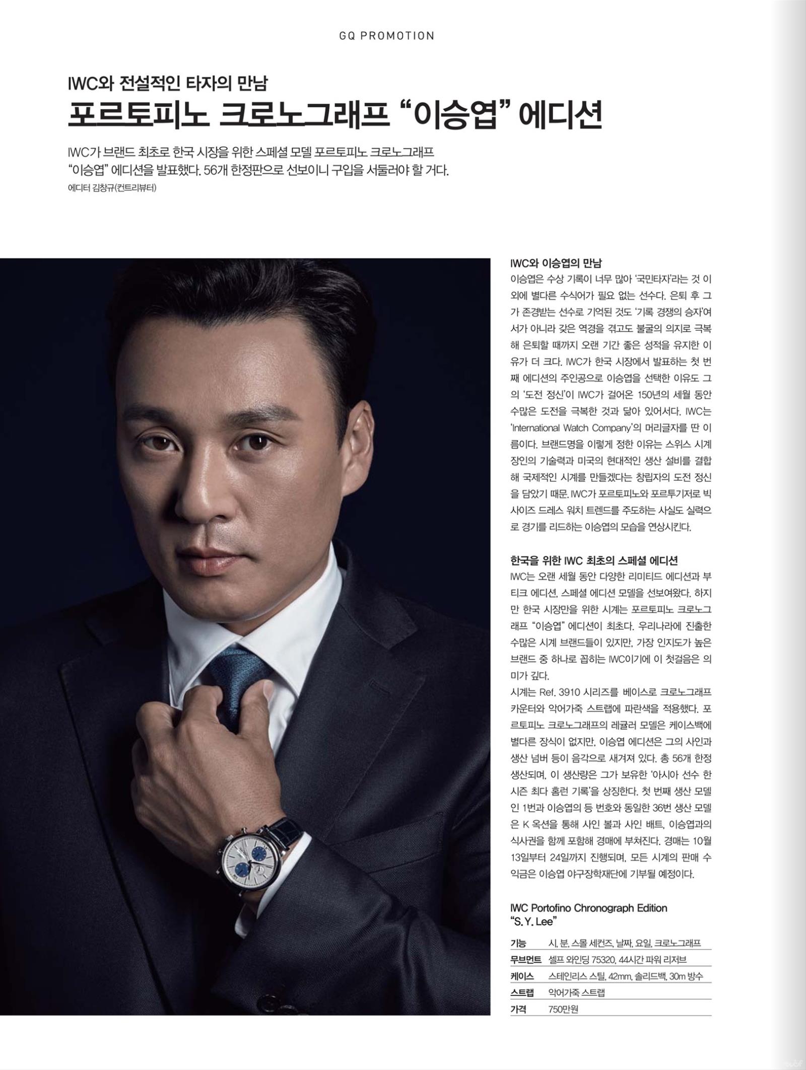 IWC 포르토피노 크로노그래프 이승엽 에디션
